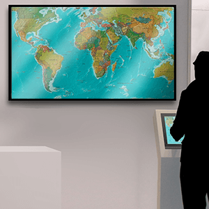- Präsentieren Sie das Geo-Quiz auf einem 22 Zoll Touch-Terminal oder auf einem 55 Toll Touch-Kiosk